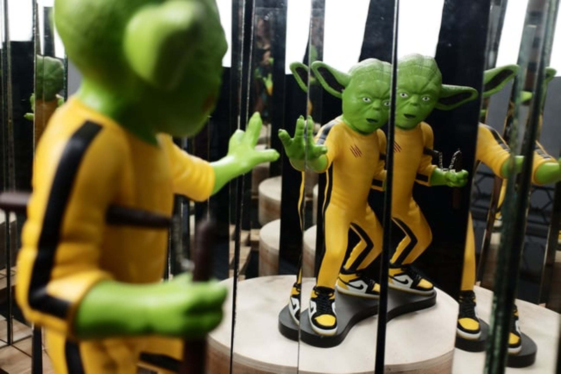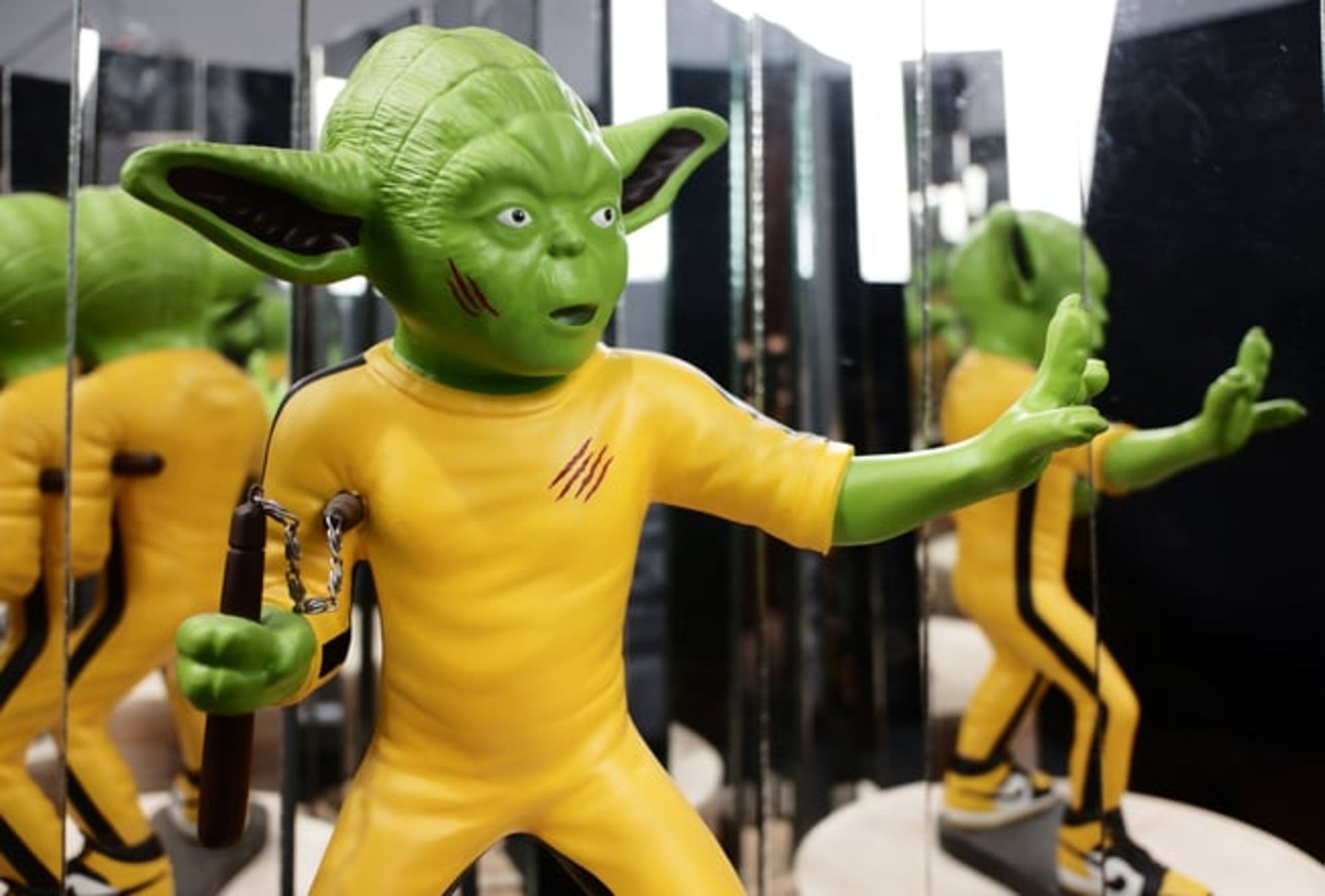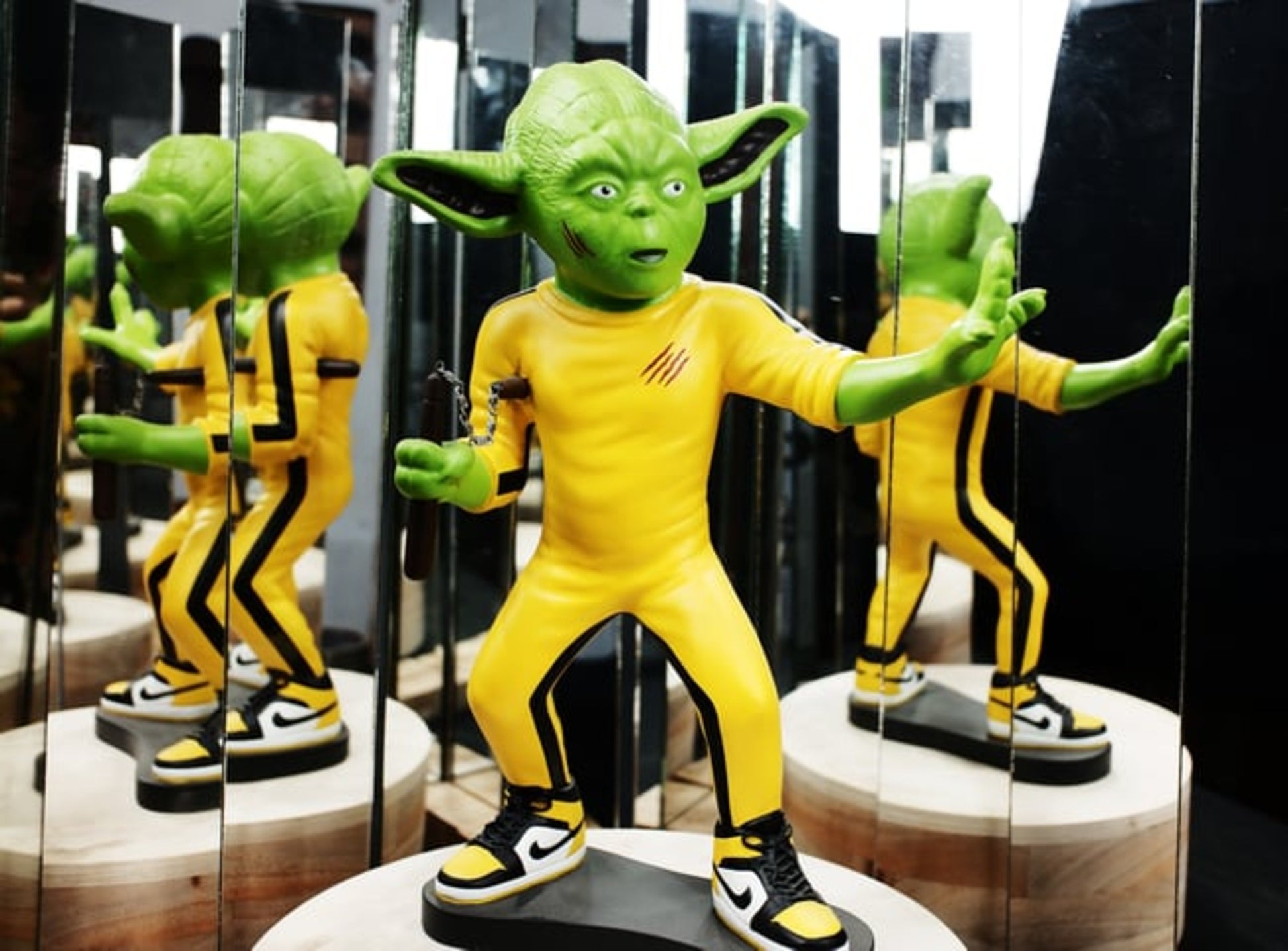 “Lee Strikes Back” adalah sebuah karya seni yang memukau, memadukan dunia Star Wars dengan sinema bela diri secara mulus. Patung ini merupakan mahakarya kreativitas dan keterampilan, menampilkan sosok Yoda yang dikemas dalam gaya khas Bruce Lee, lengkap dengan sepasang tongkat ganda.