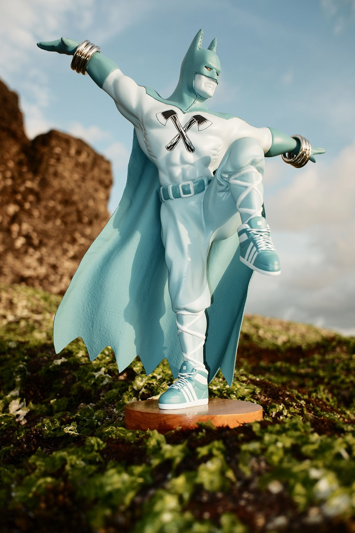 Pose Batboy terinspirasi dari jurus klasik bela diri, menghadirkan kesan dinamis dan penuh gerakan. Tentu saja, telinga kelelawar dan sayap khas Batboy tetap ditampilkan dengan menonjol, sebagai penghormatan pada sosok legendaris yang telah memikat imajinasi kita dari generasi ke generasi.