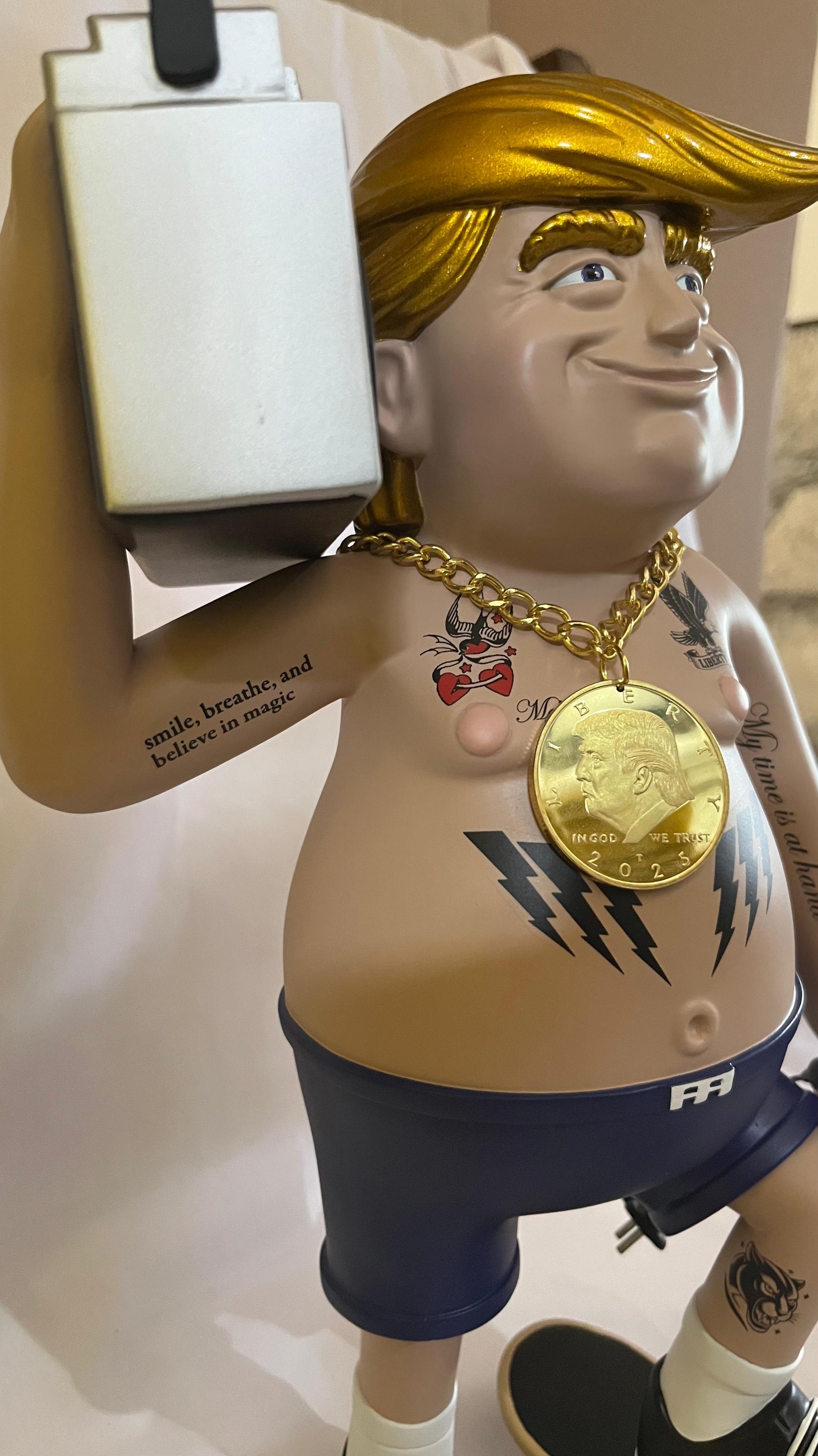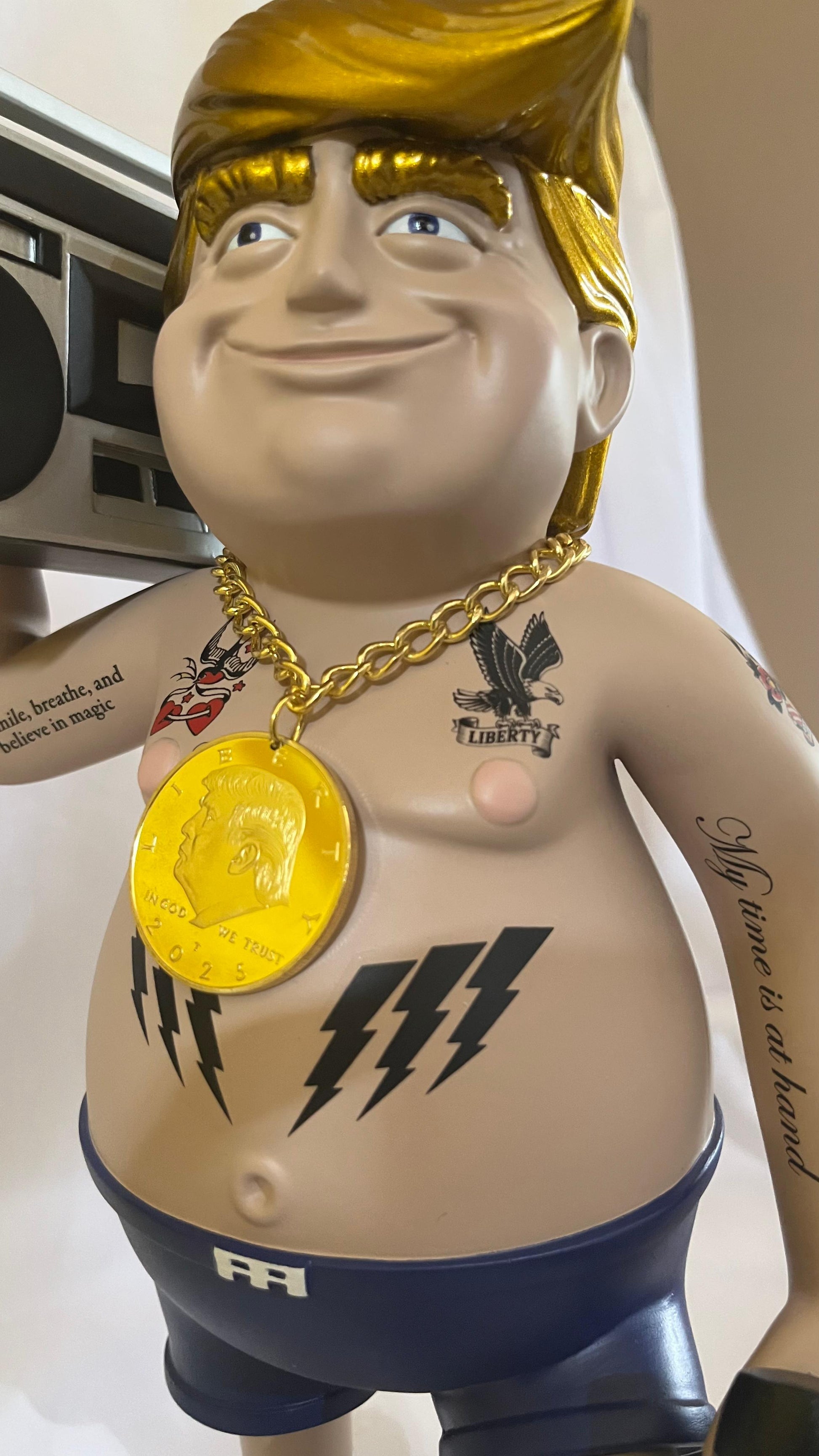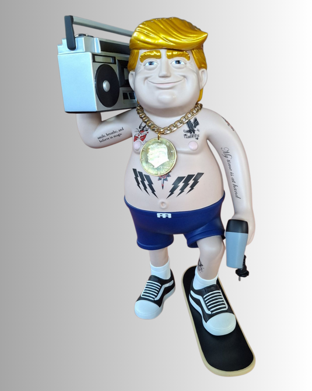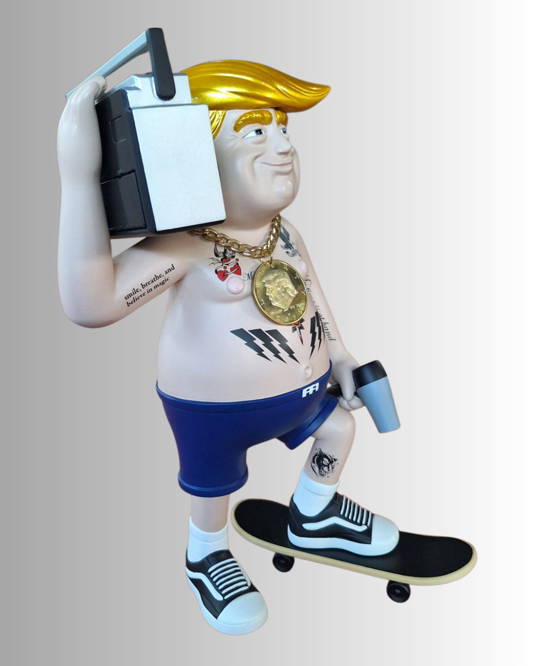Memperkenalkan “The Greatest... The Biggest”, sebuah interpretasi berani dan imajinatif dari salah satu figur paling dikenal di dunia. Limited edition art toy berbahan resin ini menghadirkan Donald Trump dalam gaya ala skater tahun 1990-an — sebuah perpaduan penuh nostalgia, budaya pop, dan satire yang jenaka.